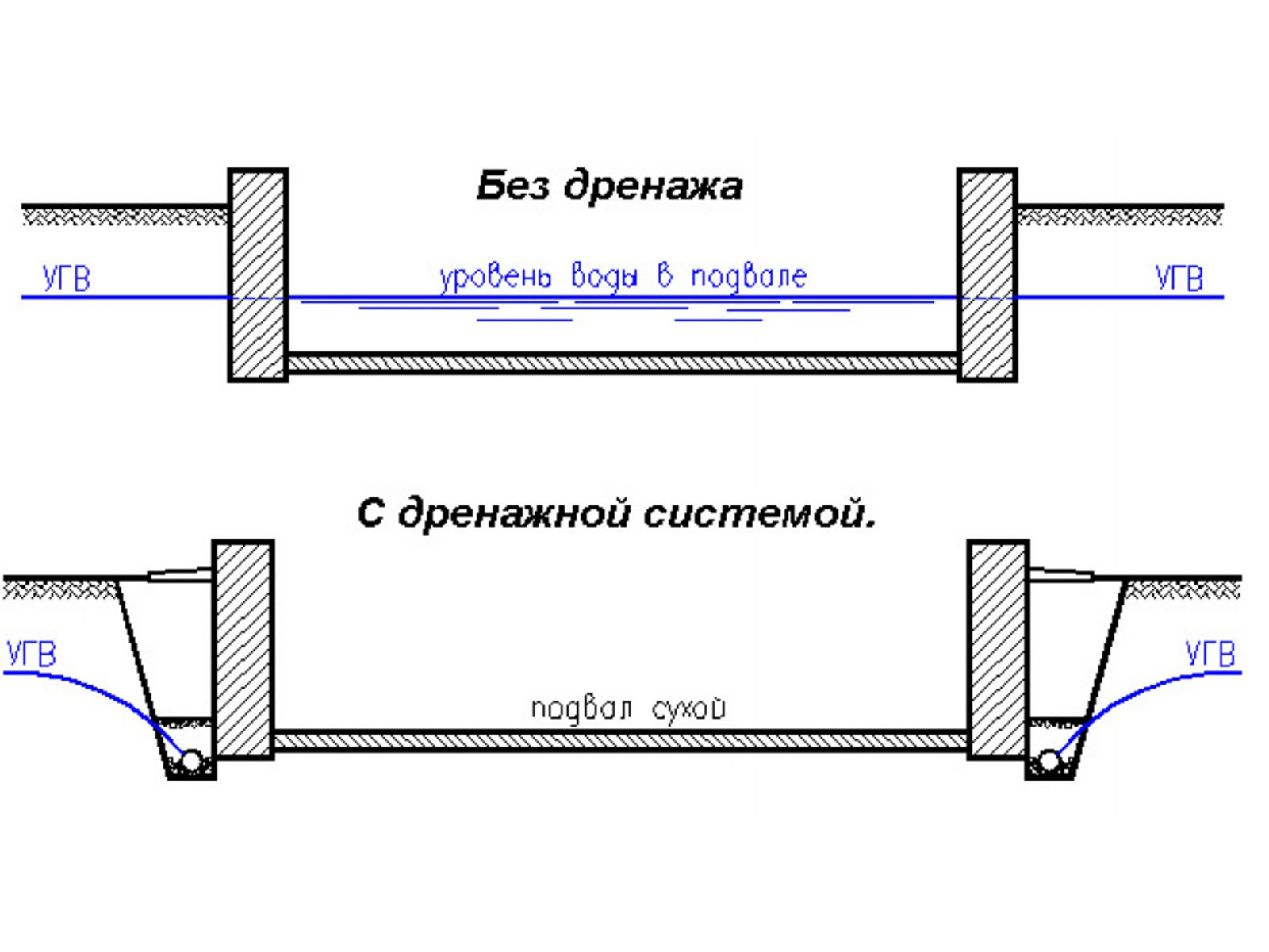 Для установки дренажа важно точно знать характер, состояние и уровень подземных вод, изучить ланшафтные особенности и геологические условия, учесть имеющиеся в наличие другие подземные коммуникации, после чего принимается решение об оптимальной реализации системы водоотвода.